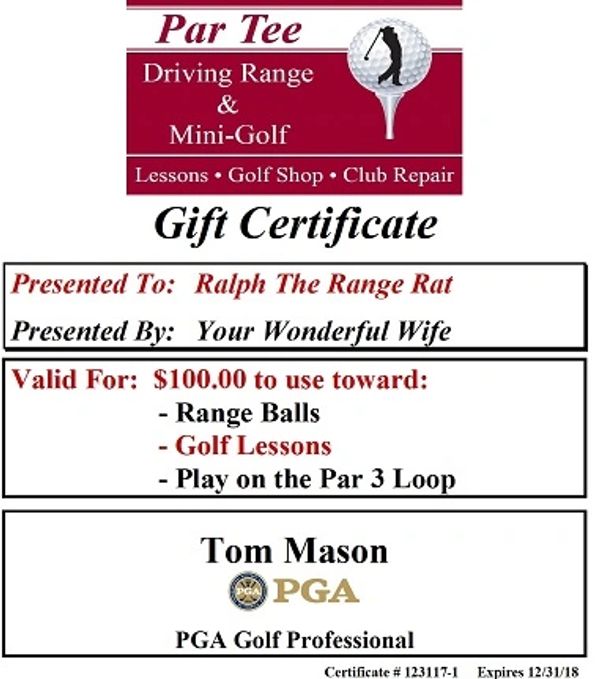 $100.00 Par Tee Gift Certificate