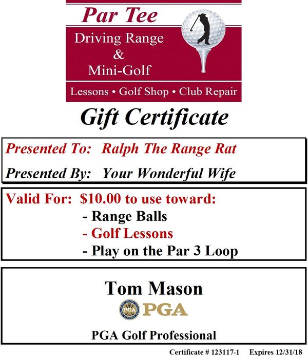$10.00 Par Tee Gift Certificate